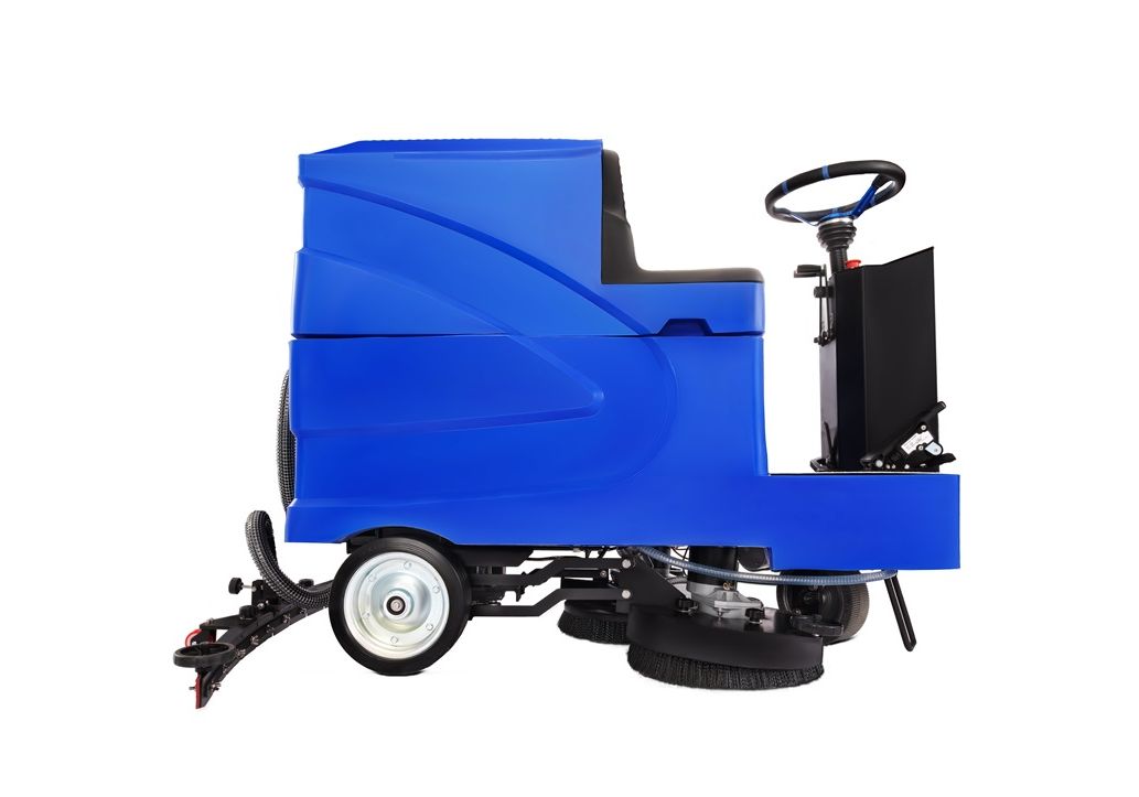Конструкция поломоечной машины состоит из рамы, изготовленной из стального профиля 60х30 мм, с двумя задними промышленными колесами и одним передним ведущим поворотным колесом (приводится в действие электромотором с редуктором через цепную передачу), баков из ударопрочного полиэтилена, стального собирающего узла, вакуумного мотора, щеточного узла с двумя моторами привода щеток, аккумуляторного отсека (с 4 необслуживаемыми AGM аккумуляторами по 6В) и места оператора с сиденьем, рулевой колонкой, панелью управления и педалями.